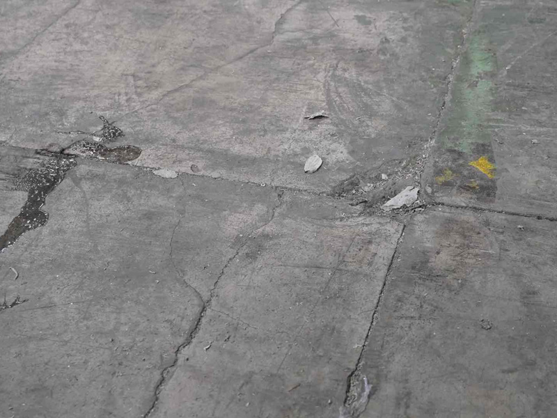 Spalling or delamination indicates internal damage. Watch for flaking surfaces or exposed rebar.